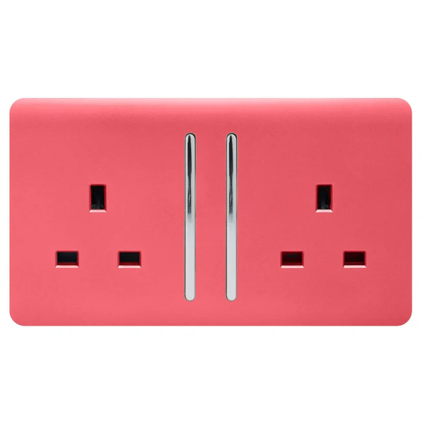 TRENDI SWITCH 2 Gang Long Switched Plug Socket in Strawberry Red